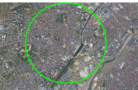 Rayon d’1 kilomètre à partir du centre de la Place de la Résistance – 1 ou plusieurs espaces publics au choix.